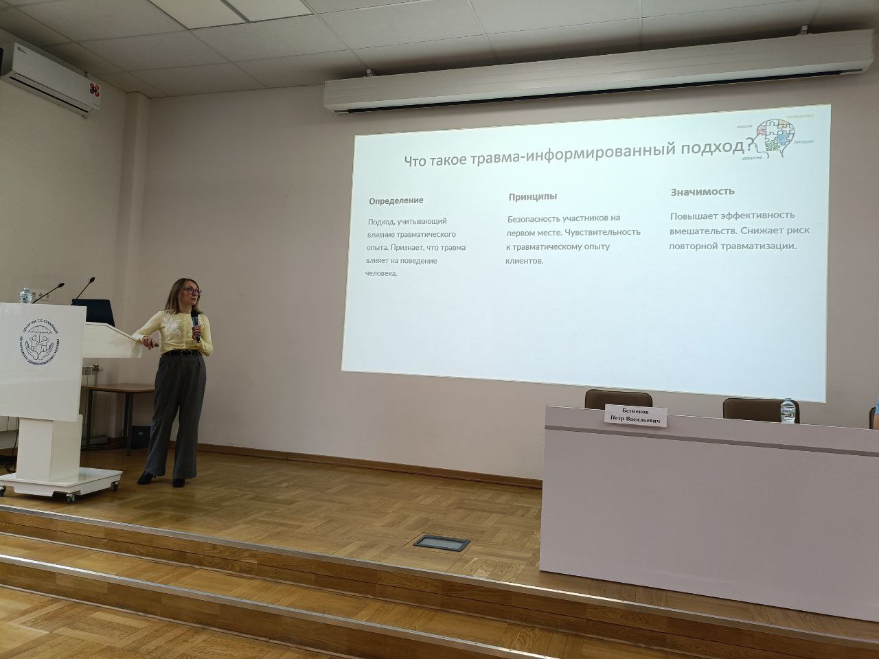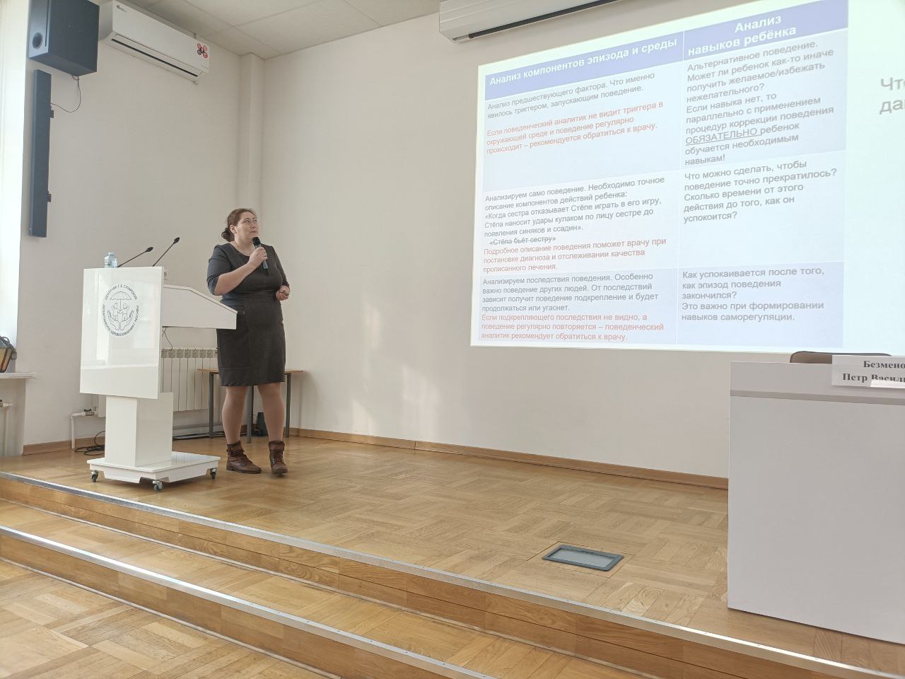 Поприветствовал собравшихся директор Центра Пётр Васильевич Безменов. Он отметил, что тема конференции очень актуальна в современном мире, как и поиск новых форм помощи не только детям, но и всей семье, в которой растет проблемный ребенок. Сейчас как никогда очевидна необходимость мультидисциплинарного комплексного подхода к помощи детям с нарушениями ментального здоровья.