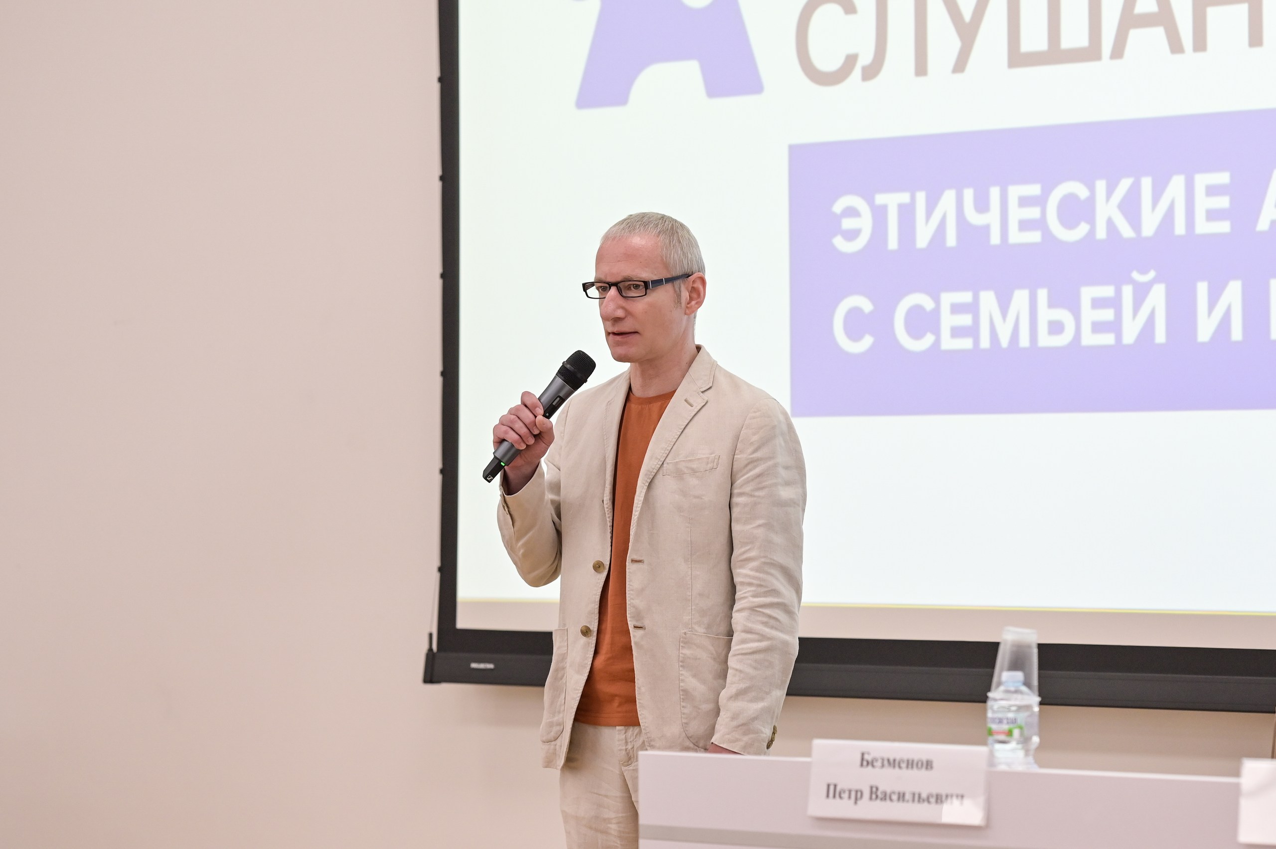 С приветственным словом к участникам конференции обратился директор Центра Безменов Петр Васильевич. Он отметил высокую важность этики в работе помогающих специалистов и междисциплинарного подхода в работе с детьми и подростками с особенностями развития.